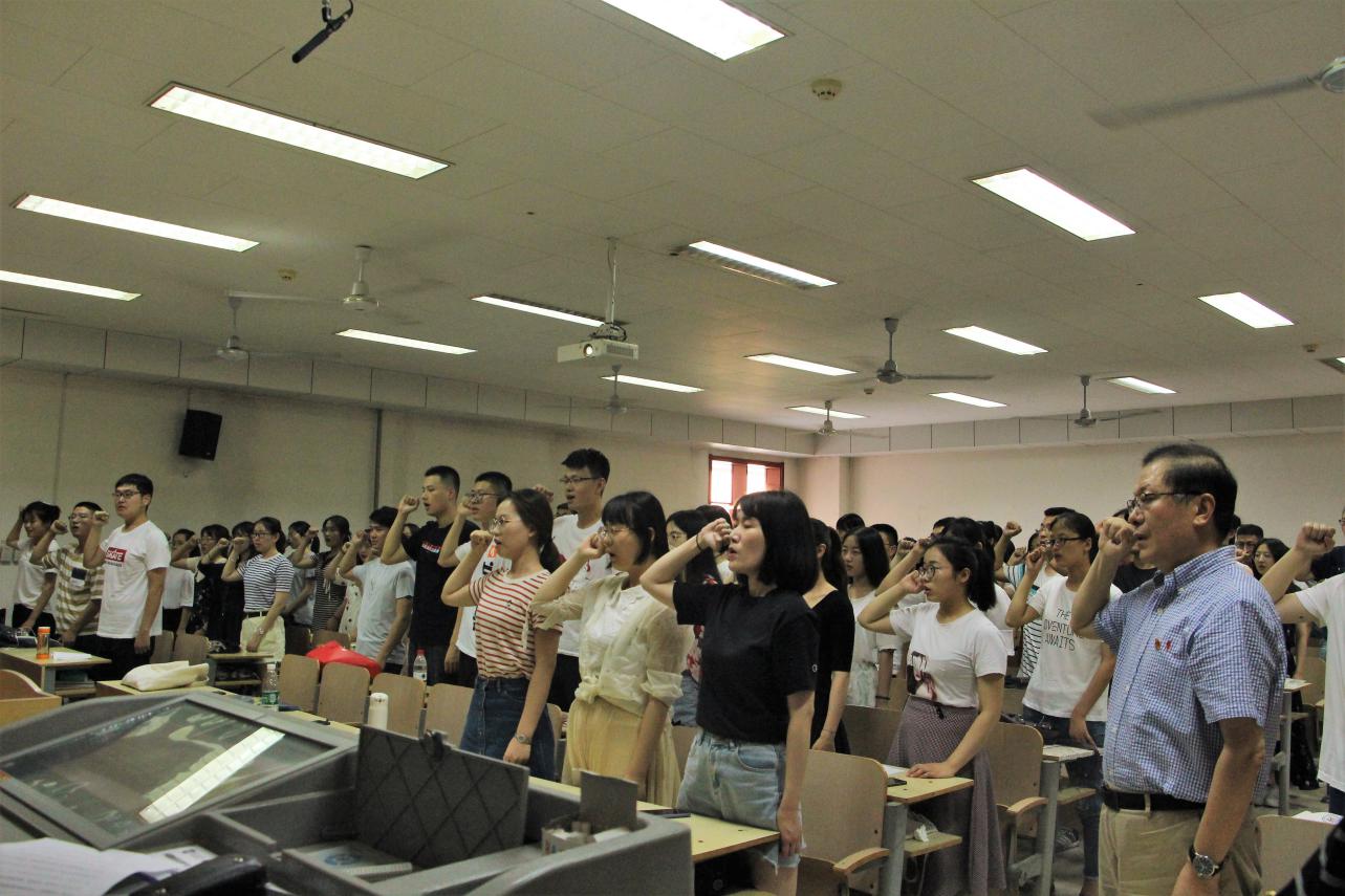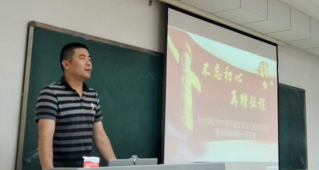 6月20日下午,在建党98周年来临之际,正值19届毕业生离校前夕,太阳成集团tyc151cc党委组织了主题为“不忘初心,再踏征程” 毕业生党员主题党日活动暨离校前最后一次党课,以新颖难忘、内涵深刻的活动形式为19届毕业生送上母校的祝福与嘱托。活动由学院党委副书记崔东峰主持,学院党委领导班子和全体毕业生党员参加了活动。