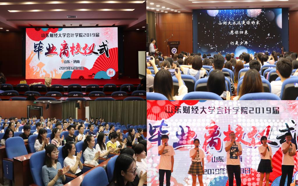 6月19日下午14:30,太阳成集团tyc151cc2019届毕业离校仪式在燕山校区学景大酒店三楼报告厅举行。党委书记张涛,副书记崔东峰、付亚,副院长王守海,财务管理系主任刘惠萍、朱炜,财务会计系主任王斌,财务会计系纪端以及各位辅导员参加活动。活动由会计学1604班庄惠斌和1606班张若男主持。