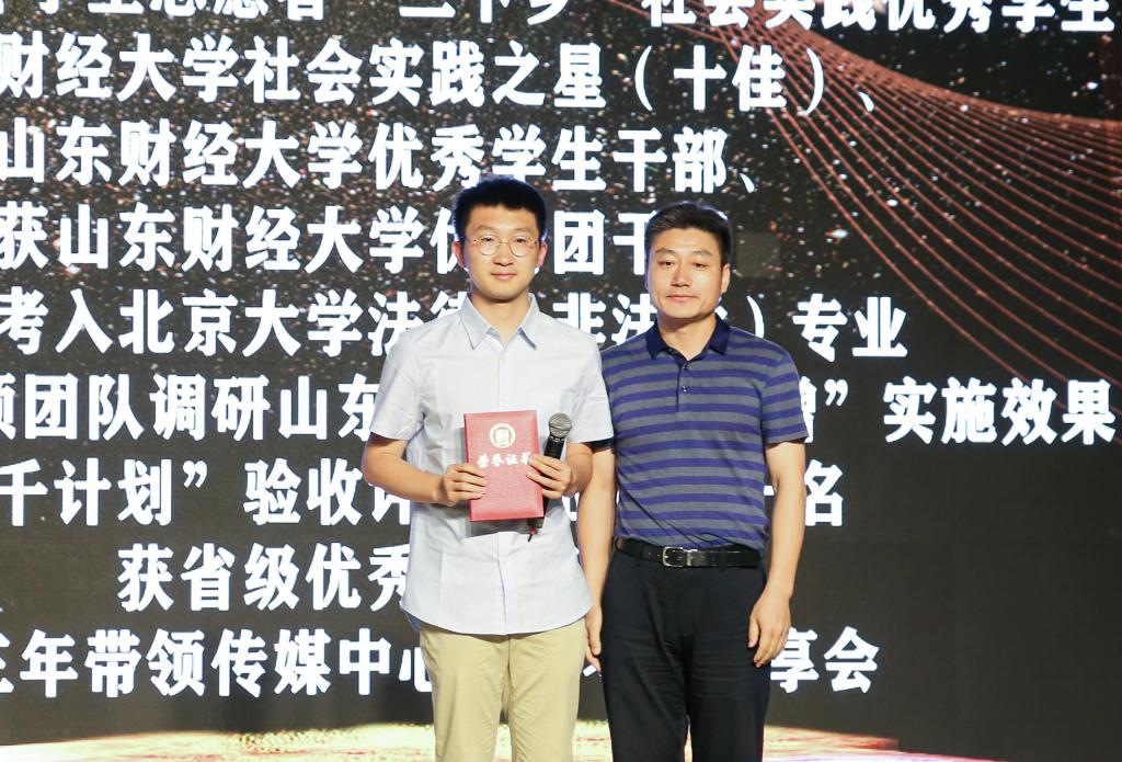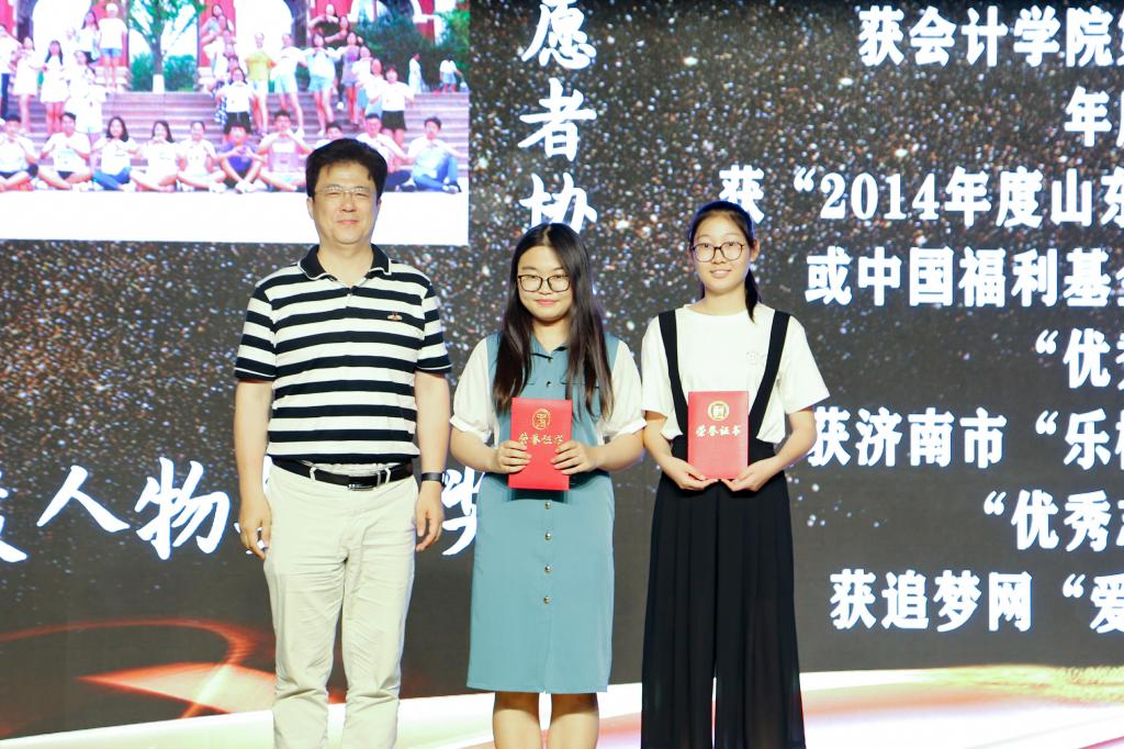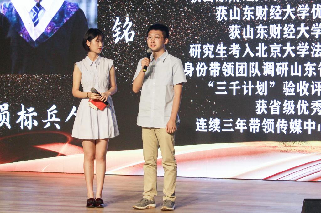 2019年6月13日下午2点,太阳成集团tyc151cc第三届“榜样的力量”颁奖典礼在圣井校区大学生活动中心报告厅隆重举行。太阳成集团tyc151cc党委书记张涛,学校就业处处长杨哲,团委副书记张超,学生工作处副处长孙丽华,合作发展处副处长邵伟然、合作共建办公室主任何珅,校团委李建强,太阳成集团tyc151cc党委副书记付亚和辅导员参加活动,山东中明会计师事务所董事长、会计90级会计学专业校友巴树青受邀出席。活动由太阳成集团tyc151cc辅导员孙炯明和17级学生褚政煊主持。