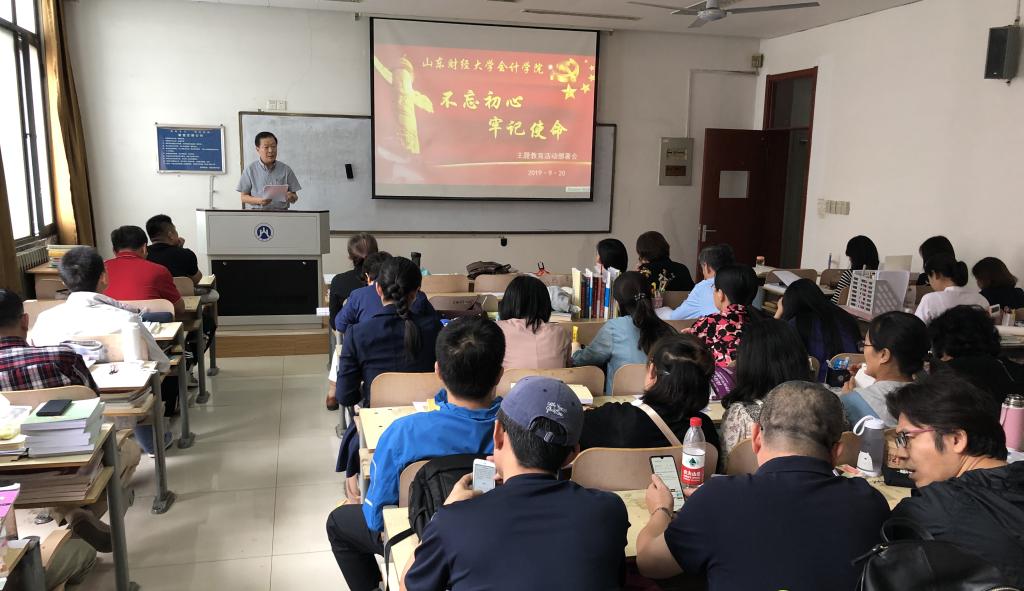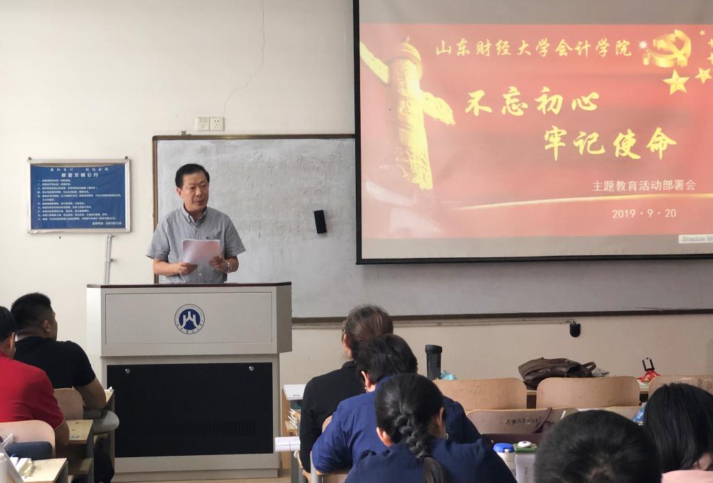 张涛传达了学校“不忘初心、牢记使命”主题教育工作方案精神,希望学院全体党员聚焦主题教育工作,全面系统学,深入思考学,联系实际学。会上,张涛对学院主题教育工作进行了部署,通报了学院成立的由党委书记任组长、院长任副组长的的领导小组及工作小组人员名单,具体负责指导和监督党员干部开展学习。
