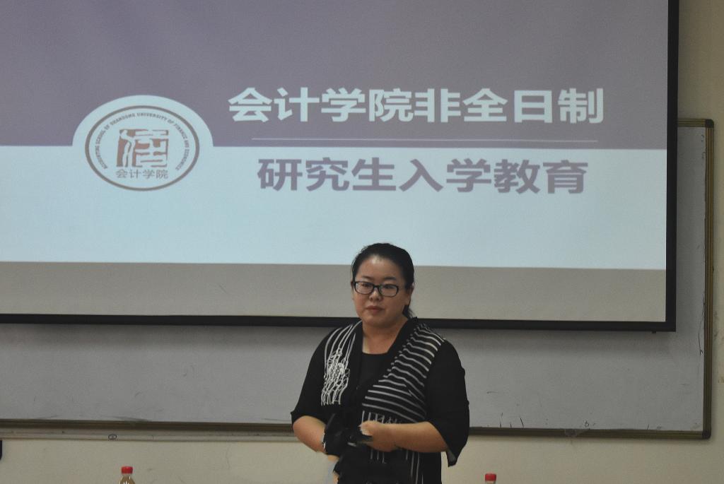 朱德胜教授代表太阳成集团tyc151cc、MPAcc中心感谢同学们对太阳集团的信任,并祝贺大家如愿以偿地被山财大录取。谈到研究生与本科生的区别,他表示,研究生不单是对知识的获取,更多地强调对知识的创造,尤其在论文写作方面,同学们要有创新性的观点,即使不能提出全新的理论,也要对现有理论做出增量贡献。针对人工智能和互联网发展对会计人的冲击,他指出,研究生要改变崇拜式的学习方式,要用怀疑的眼光批判式、探究性的学习,以适应外部环境的快速变化。最后,朱院长希望同学们在最快的时间内选择与自己研究方向、研究兴趣相近的导师,尽早融入导师团队,在项目讨论中取得进步。