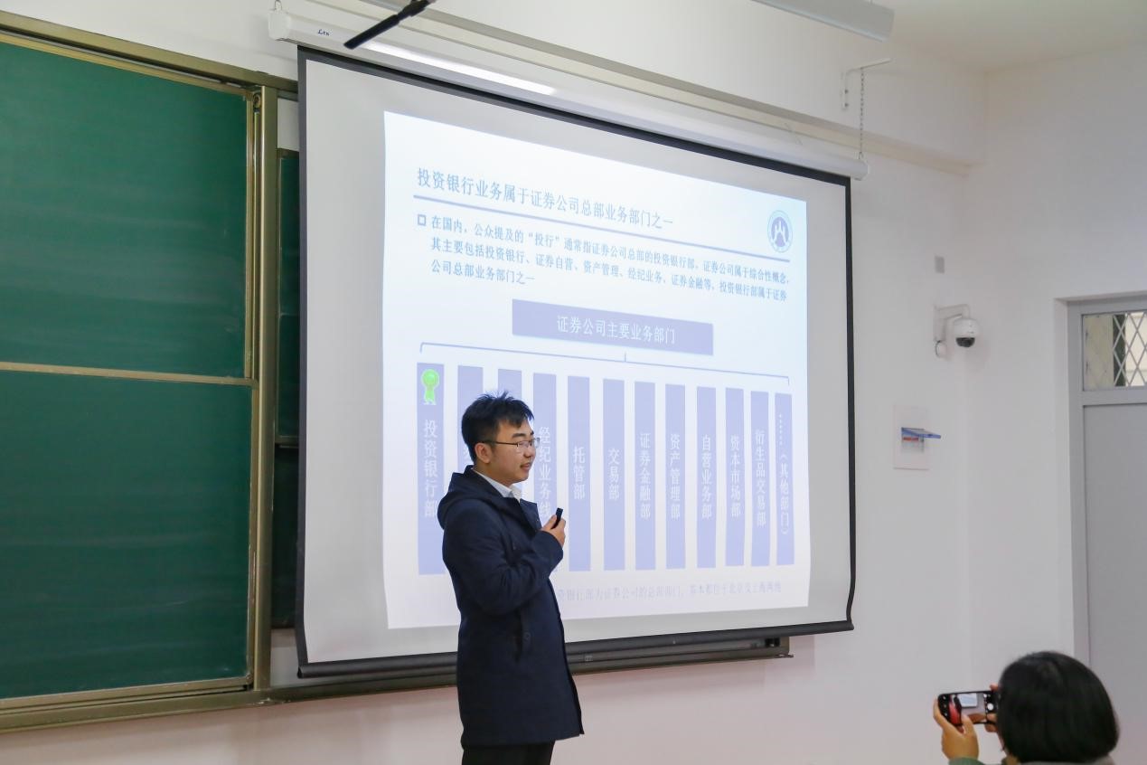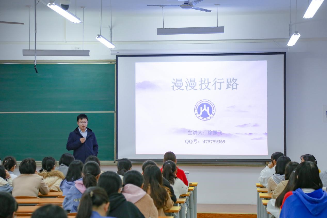 为加深学生对金融证券行业的了解,进一步明确职业生涯发展,做好未来职业规划,11月3日下午14:30,太阳成集团tyc151cc主办的金融证券行业职业发展规划及经验分享会在圣井校区6-116教室举行,12级会计学4班校友徐振飞主讲,各年级学生代表到场聆听。