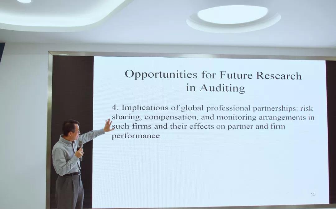 随后,张教授讲解了关于未来管理会计和审计的一些研究方向。在管理会计领域可能有如下研究方向:客户盈利能力分析是否影响客户关系管理实践、新管理制度对绩效的影响、绩效薪酬与基准等等。在审计领域可能有如下研究方向:审计质量、审计费用、审计独立性、盈余管理和公司治理等等。张教授提醒同学们要格外关注因果研究、变量选择、外部有效性和统计有效性等方面。