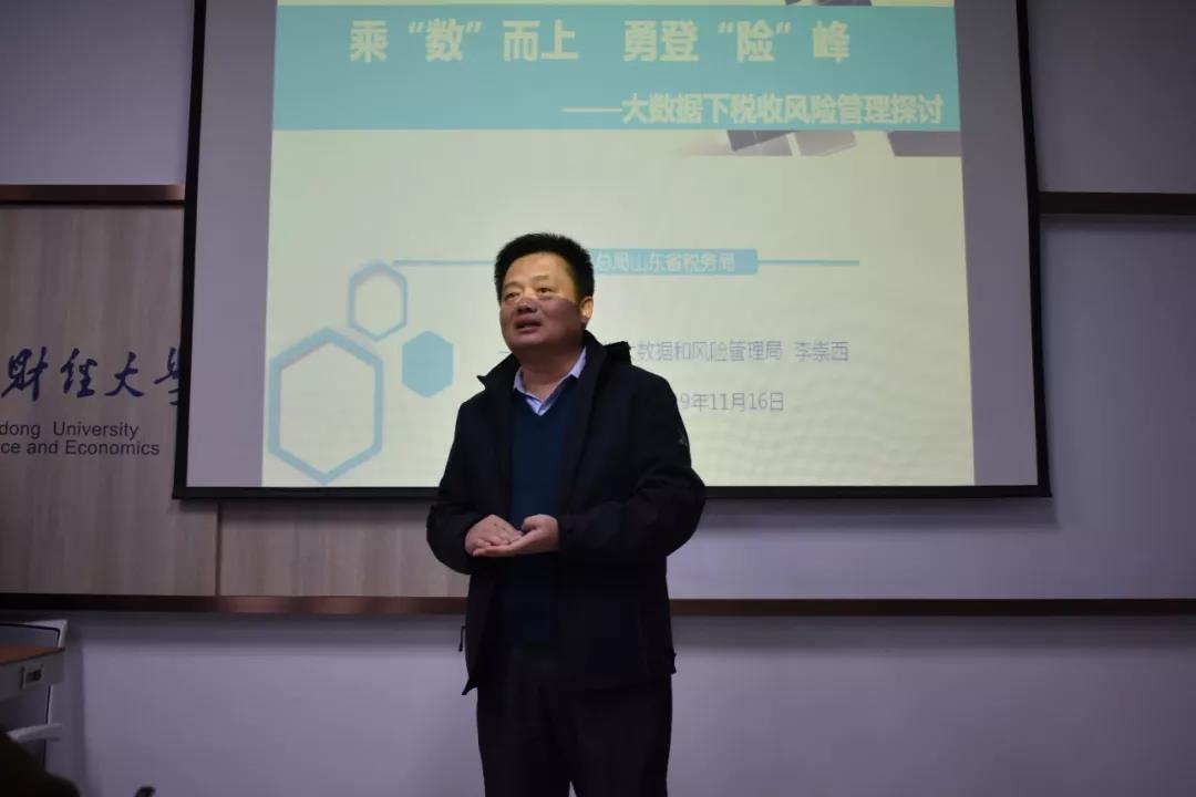 11月16日下午,李崇西教授应我院邀请,在逸夫楼Y307作题为《乘“数”而上,勇登“险”峰——大数据下的税收风险管理》的学术报告。讲座由MPAcc中心主任、太阳成集团tyc151cc副院长朱德胜主持,太阳成集团tyc151cc部分老师及硕士研究生到场聆听。