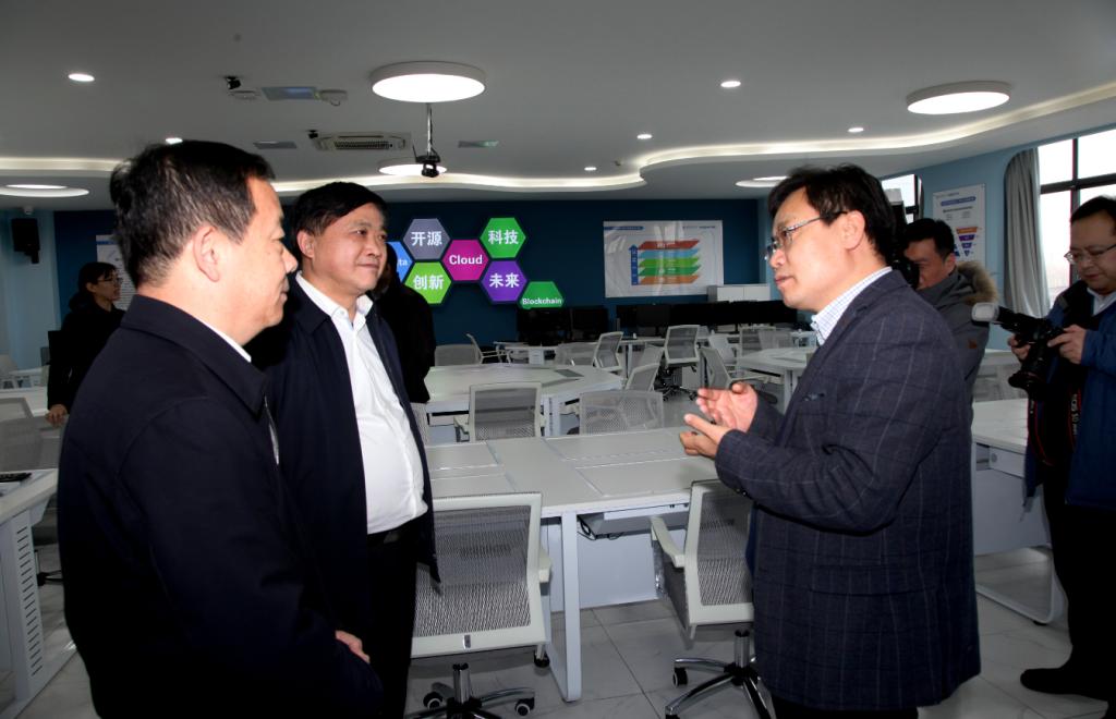 1月3日下午,山东省科技厅厅长唐波在太阳集团党委书记王邵军、副书记赵友春、副校长陈晓兰和职能部门领导陪同下,来我院智能会计实验室进行调研。太阳成集团tyc151cc党委书记张涛、院长王爱国和会计信息化部主任牛艳芳参加调研活动。