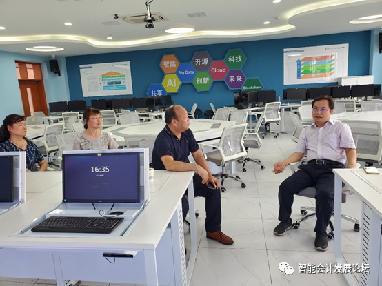 座谈会期间,西安财经大学商学院副院长陈淑芳教授、商学院会计系主任贡晓军教授希望借鉴我院AI背景下的会计改革和智能会计实验室建设经验,期翼借船出海、变道超车,走出一条和我院协同发展的改革之路。应两位教授的要求,王爱国院长对我院智能会计改革进行了全景式回顾,包括专业名称的缘起、培养方案论证、智能会计方向班招生模式、智能会计系列教材论证和编写及出版、申请教育部目录外专业愿景规划、智能会计改革产业协同和国际协同、智能会计研究中心体制机制构建、智能会计发展国际高峰论坛举办等。