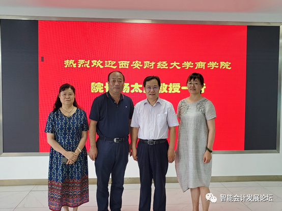 8月12日下午,西安财经大学商学院院长杨太康教授、商学院分管教学副院长陈淑芳教授、商学院会计系主任贡晓军教授访问我院。王爱国院长于智能会计实验室和来访嘉宾展开会谈,智能会计研究中心执行主任滕晓东出席座谈。