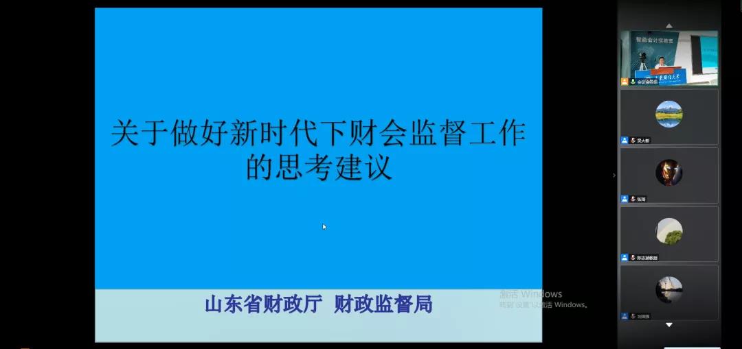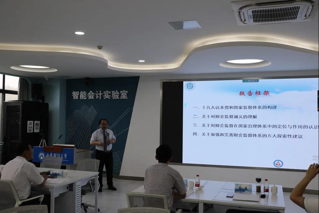 山东省财政厅财政监督局朱局长分享了《关于做好新时代下财会监督工作的思考建议》的主题报告,他结合山东省财政厅财政监督工作实务,从财政监督局的职责定位和工作内容、对财会监督概念的理解和认识、当前财会监督工作中存在的问题以及加强财会监督的对策建议等四个部分,分享了他的学术观点和实务经验。