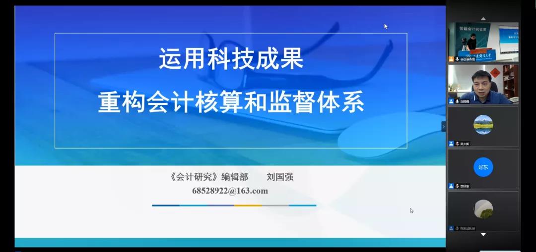 刘国强主任以《运用科技成果重构会计核算和监督体系》为题做了主题发言,他以新时代、新治理、新技术为主要内容分析了当前会计理论研究的时代背景、以“大智移云物区”等新技术的发展分析了基础科学进步与会计理论创新、最后对会计核算和监督体系的重构提出了自己的观点。