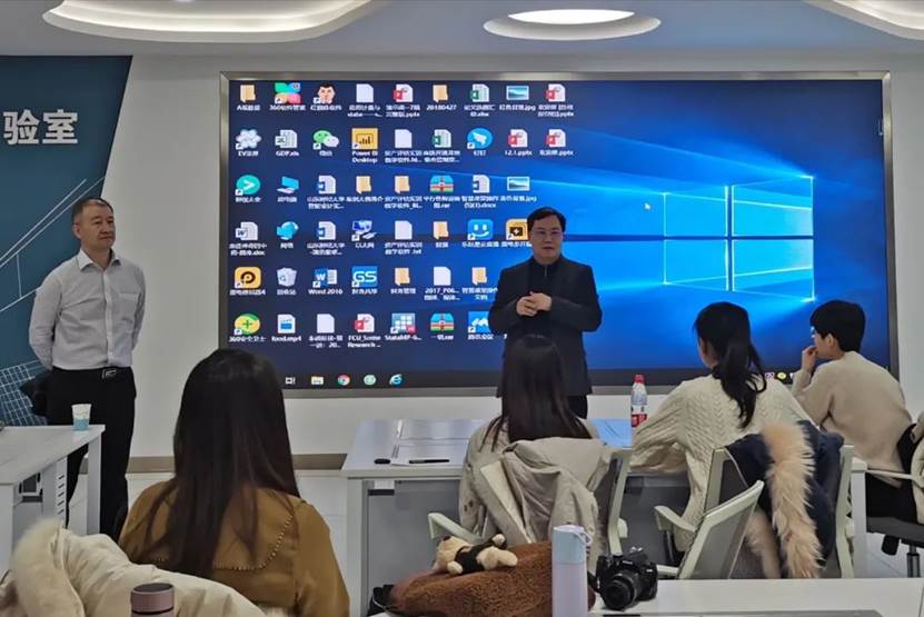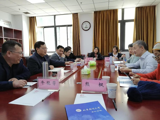 王爱国院长向客人介绍了我校智能会计专业建设“山财模式”的发展历程,包括发展缘起、特色聚焦、组织机构搭建、培养方案论证、实验室建设、校企合作、智能会计方向班招生和培养、智能会计发展国际高峰论坛举办、智能会计专业系列教材编写和出版、海峡两岸高校交流、东北亚数智经济研究院申报、教学成果奖培育、师资研修班筹备和未来的发展走向。