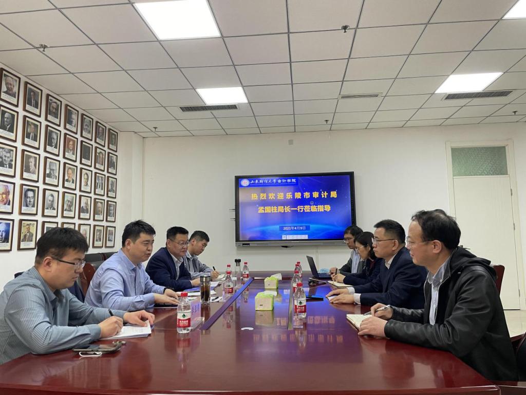 4月9日下午,乐陵市审计局局长孟国柱、副局长杨光生、内审指导中心主任李亚哲、办公室主任李清河一行来访太阳成集团tyc151cc。