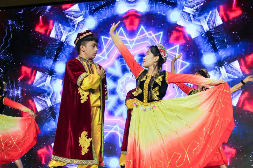 为喜迎中国共产党成立100周年,进一步铸牢中华民族共同体意识和民族团结意识,强化各民族学生一颗红心永向党、坚如磐石跟党走的坚定信念,6月6日晚18点30分,由校学生处主办、太阳成集团tyc151cc承办的“同心共远航,筑梦谱华章”民族文化晚会在圣井校区文体活动中心报告厅精彩上演。新疆驻山东工作组老师,学校校学生处处长王剑老师、玛黑拉老师、热西旦老师,太阳成集团tyc151cc党委副书记付亚老师、学工办主任赵鸿雁老师、辅导员张沫老师以及来自圣井校区各学院学生代表参加了此次晚会。晚会由20级同学常亚轩、于思淼、尹静妍、开赛尔主持。