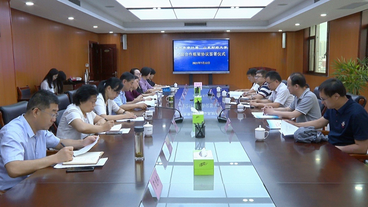 邵文涛书记介绍了我校的学科优势,对滨州市审计局及内部审计师协会在内部审计监督指导、内部审计服务支持方面取得的重大成果给予高度评价。他表示本着“优势互补、互惠互利、共同发展”的原则,围绕经济社会发展特别是审计工作创新的需要,双方合作共同研究当前审计发展中面临的新情况、新问题,解决在经济、管理、社会发展战略和生态文明建设等方面的问题,注重从审计对象、审计方法、审计内容、审计信息反馈和评价体系、审计信息化建设等多方面丰富审计理论和实践经验,将科研成果运用到国家审计及内部审计实践中。通过建立内部审计实践教学基地,做好教学与审计实践实务融合,共同搭建合作共赢的实践平台。