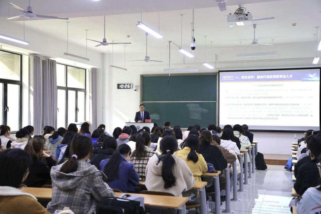 郝先经首先感谢学校和学院给予信永中和会计事务所济南分部长期合作的机会,对同学们来到山财大太阳成集团tyc151cc学习会计学这门专业表示祝贺。他围绕“专业成就未来“主题,分别从”校企合作“、”行业回眸”、“风雨兼程”、“未来寄语”四个方面与同学进行了深入探讨。