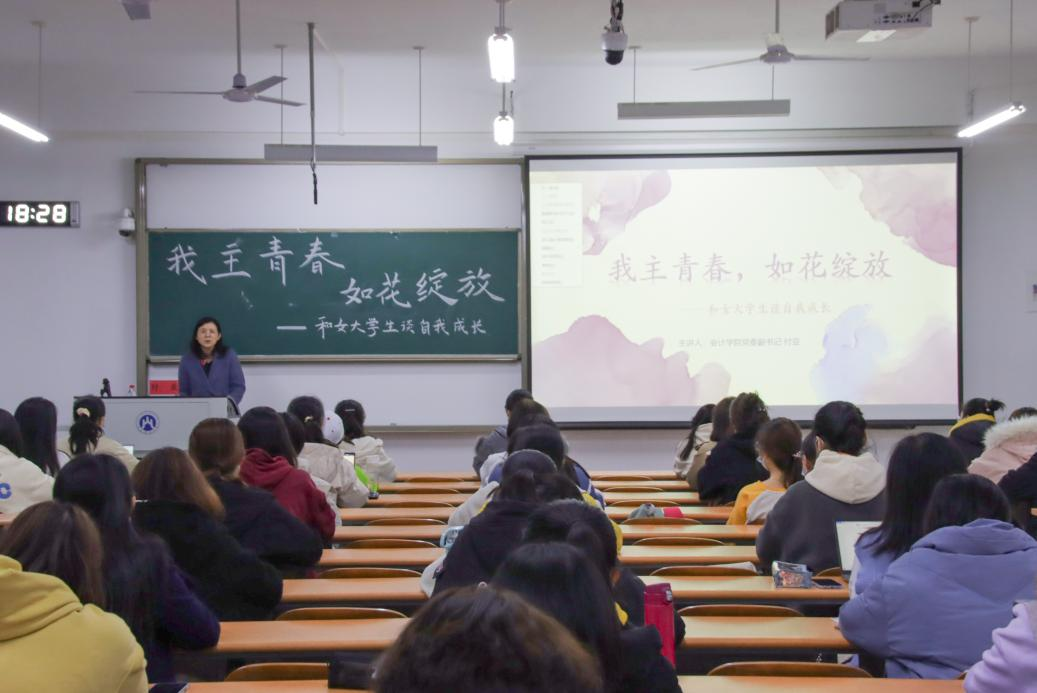为教育引导女大学生自尊自爱、自立自强,更加从容淡定、积极阳光地面对学习生活和工作,11月16日18:30,太阳成集团tyc151cc党委副书记付亚在圣井校区6216教室为女大学生们开展“我主青春,如花绽放——和女大学生谈自我成长”讲座。