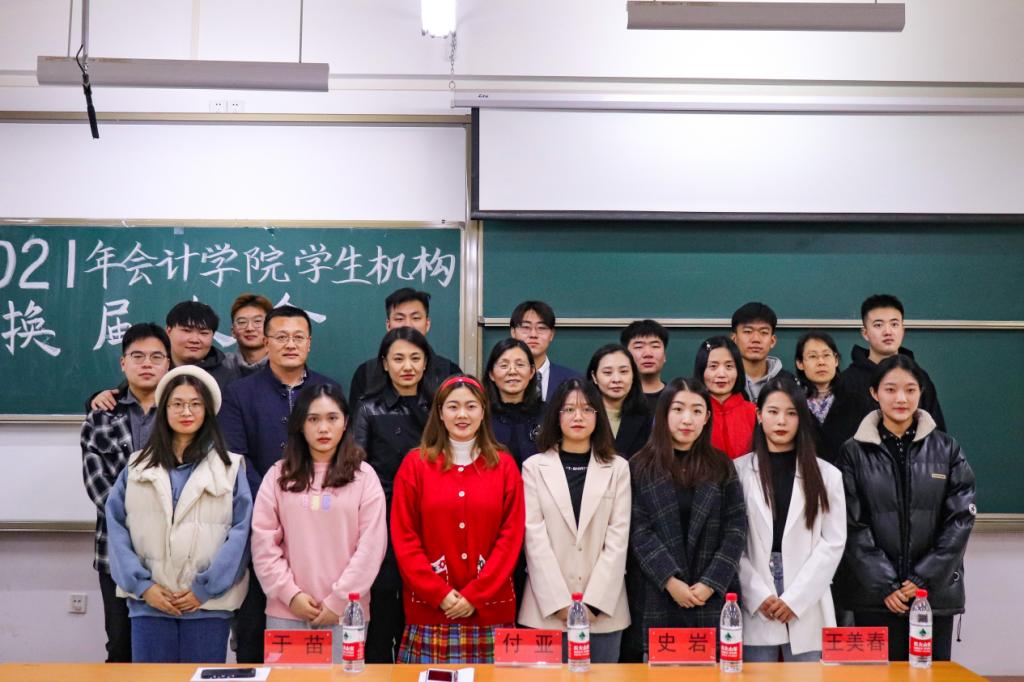 11月25日中午,太阳成集团tyc151cc2021年学生机构换届大会在圣井校区6214教室举行。太阳成集团tyc151cc党委副书记付亚、团委书记于苗、就业办主任史岩,辅导员王美春、王文伟、郭秀娟出席,2018、19级学生会主席团成员、各机构、部门学生干部代表参加大会,2020级初颖主持大会。
