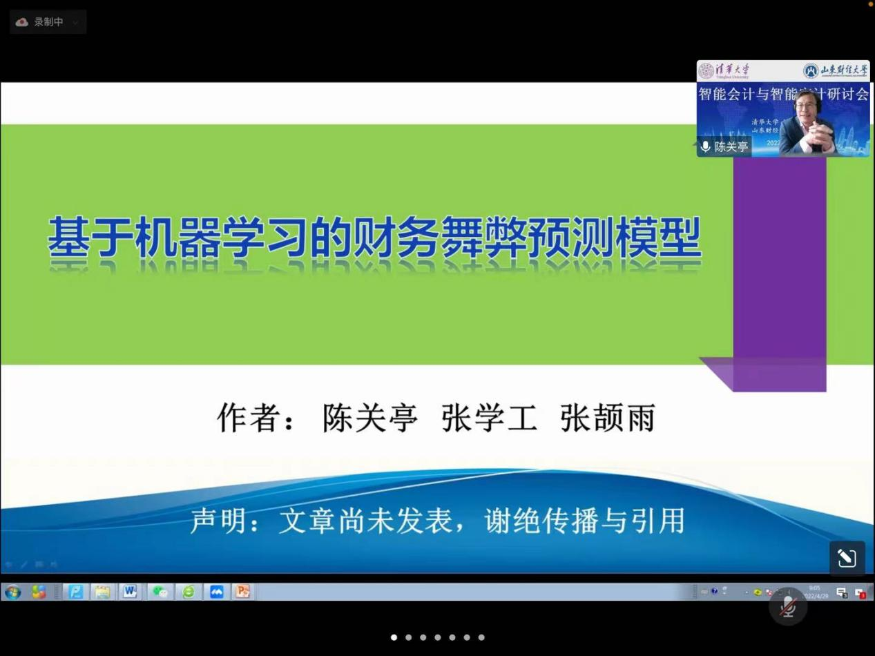 首先,陈关亭分享其最新研究成果“基于机器学习的财务舞弊预测模型”,从文献综述、集成学习、因子构建、样本数据处理以及研究贡献等方面做出详细介绍,并提出相关建议。