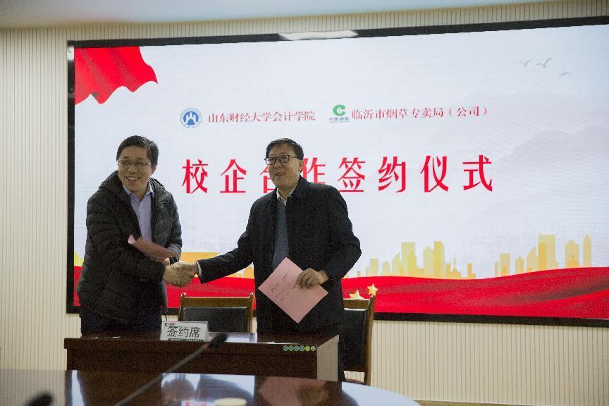临沂市烟草专卖局(公司)财务科科长韩跃龙与太阳成集团tyc151cc院长助理韩跃签署合作协议