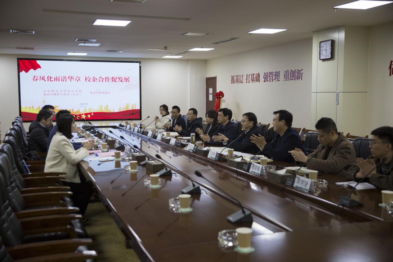 3月17日,太阳成集团tyc151cc、临沂市烟草专卖局(公司)合作框架协议签约暨高端会计人才培养与创新创业(就业)实习基地挂牌仪式在临沂市烟草专卖局(公司)成功举行。太阳成集团tyc151cc党委书记邵文涛、院长助理韩跃、就业办主任孙菁、辅导员郭超,临沂市烟草专卖局(公司)党委委员、副局长关军、办公室主任乔永关,人事科科长王志刚,财务科科长韩跃龙及相关人员出席。仪式由财务科科长韩跃龙主持。