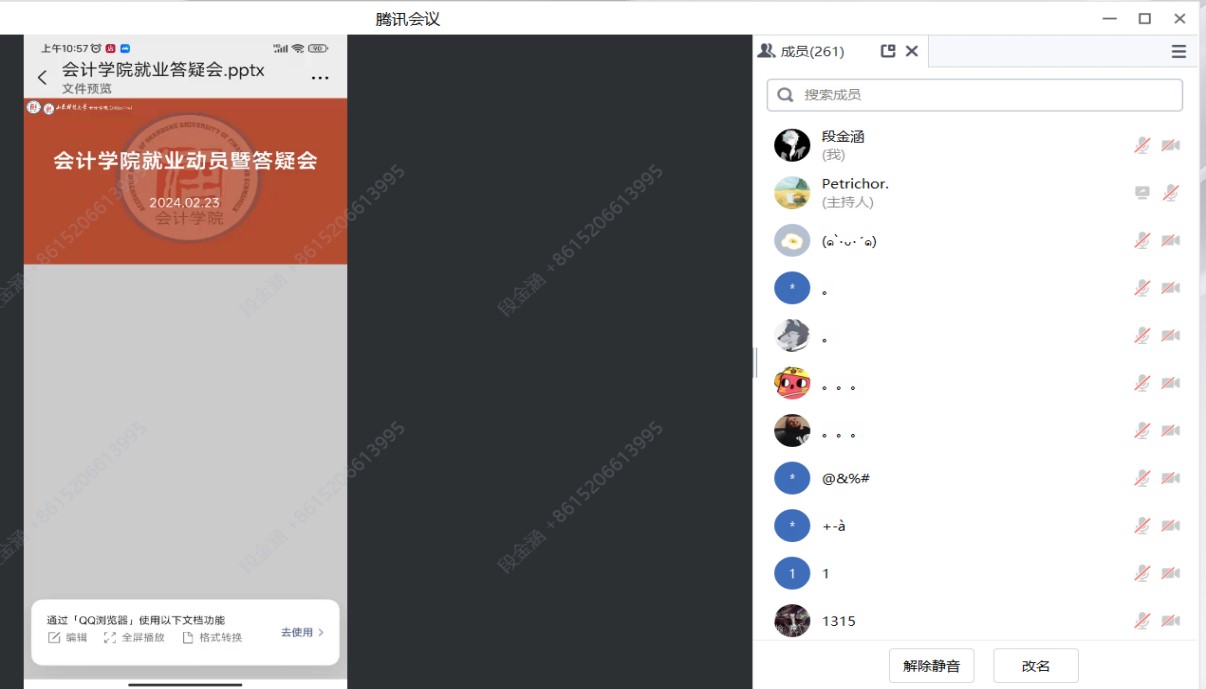 本次线上就业指导会卓有成效,毕业生收获满满。会议的成功举办,为即将走出校园的学子们提供了宝贵的职业建议和指导。相信,在学校、学院的关心和支持下,毕业生们一定能够顺利开启自己的职业生涯,迎接职场的挑战,为自己的未来书写精彩的篇章。同时,学院将举办更多就业指导活动,为学院24届毕业生的就业打下良好基础,助力毕业生实现充分且高质量就业。