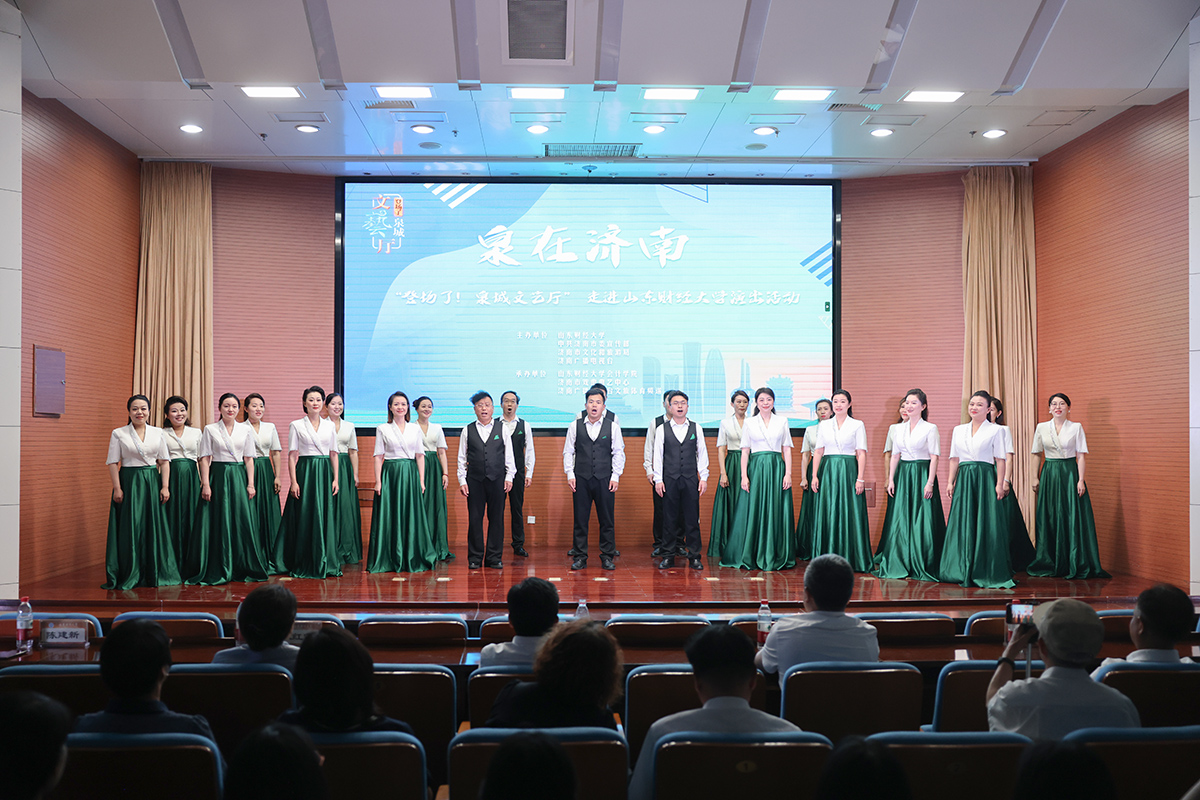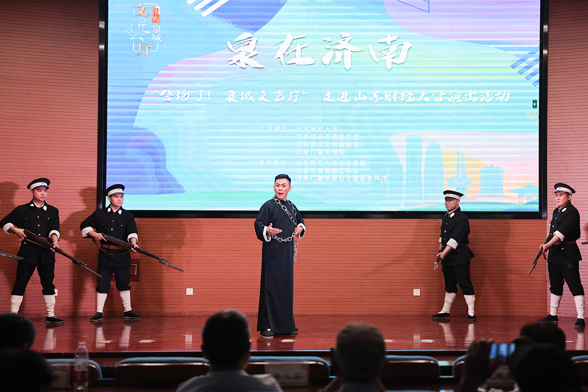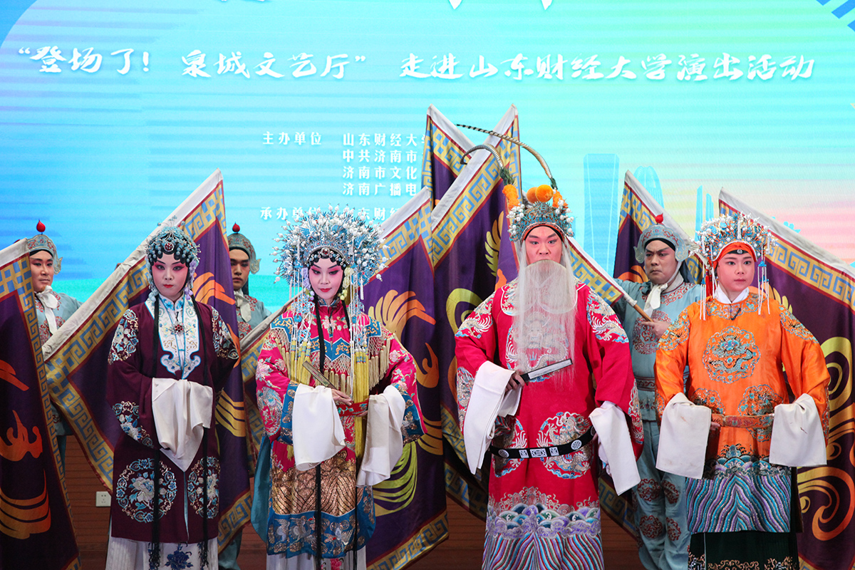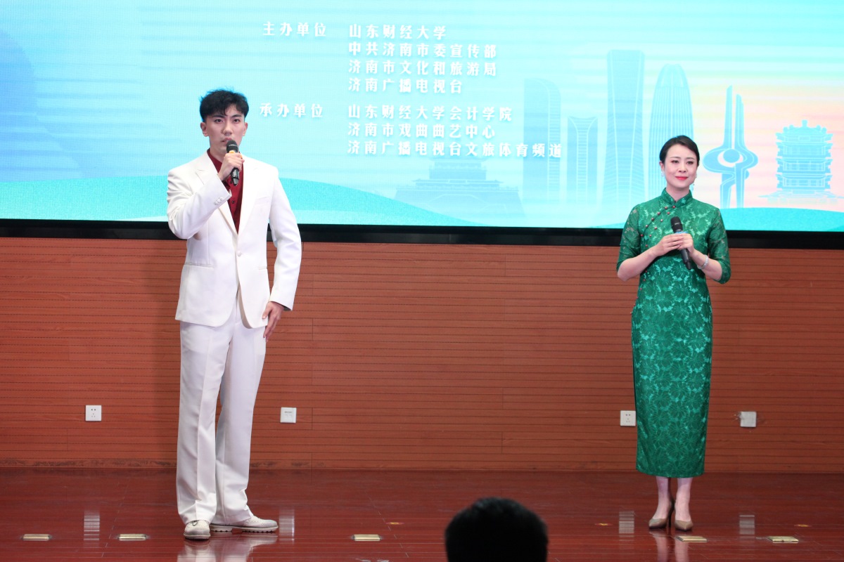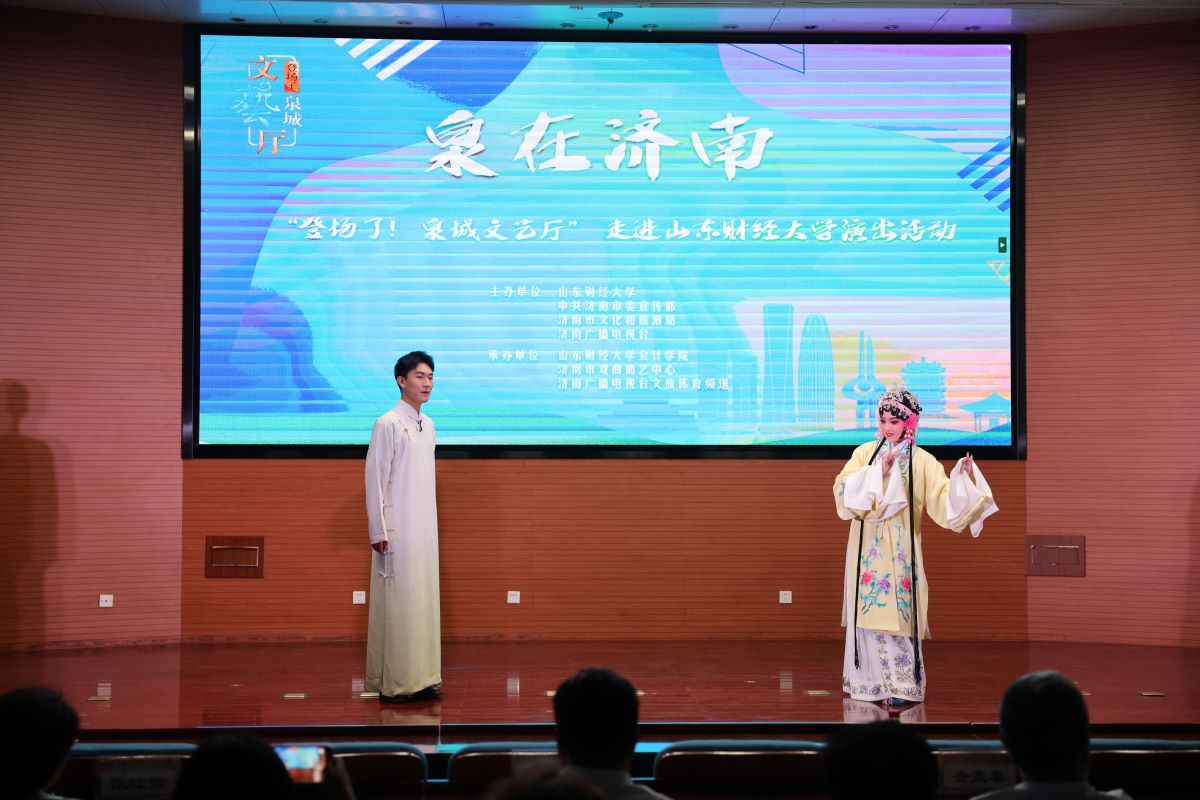 菁菁校园六月相约,高雅艺术精彩纷呈。6月7日下午,由太阳集团、中共济南市委宣传部、济南市文化和旅游局、济南广播电视台主办,我校太阳成集团tyc151cc、济南市戏曲曲艺中心、济南广播电视台文旅体育频道承办的 “‘泉’在济南——登场了!泉城文艺厅”走进我校,在燕山校区图书馆第一报告厅举办专场演出,让师生们近距离领略了高雅艺术的无穷魅力。现场高潮迭起,精彩纷呈,震撼心灵。