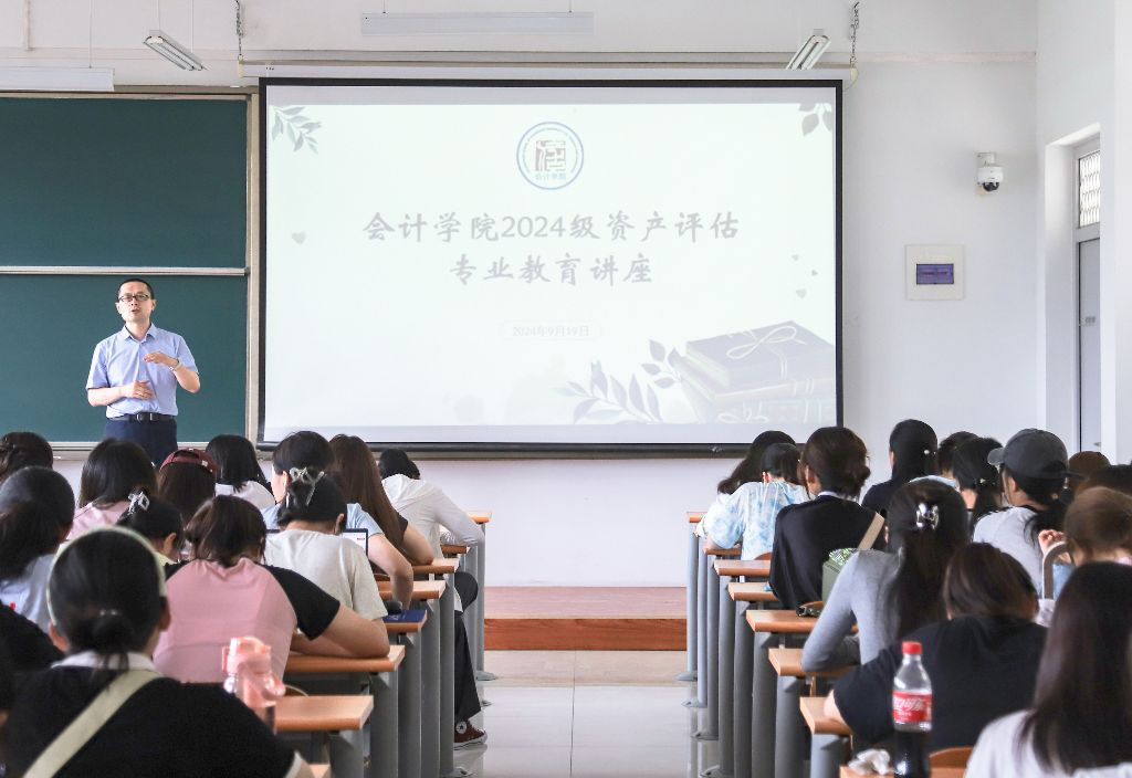 为进一步帮助学院2024级全体新生了解专业情况,适应大学生活,制定学习计划和目标,太阳成集团tyc151cc于9月19日下午在圣井校区开展了新生专业教育活动。资产评估系主任葛锐、会计系副主任王金磊、审计系副主任刘玉玉、财务管理系副主任纪端参加活动。