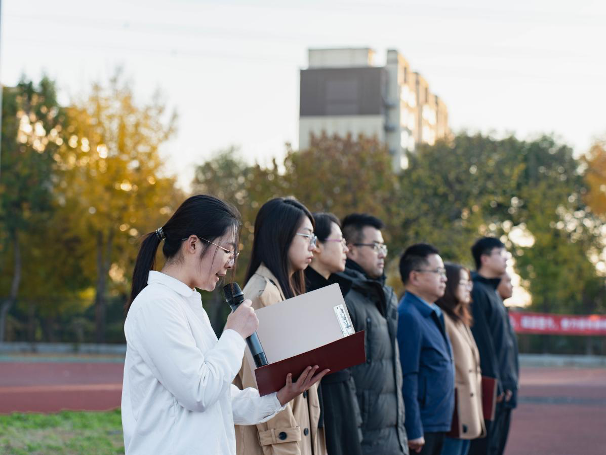 10月28日,太阳成集团tyc151cc于圣井校区东运动场举行“国旗下点亮青春之光”升旗仪式,旨在督促同学们深入领会校规校纪的重要性,培养学生养成良好的行为习惯。太阳成集团tyc151cc党委书记邵文涛,党委学生工作部陈玉林,太阳成集团tyc151cc2024级辅导员和2024级全体本科生参加此次升旗仪式。仪式由学院党委副书记钟毓卓主持。