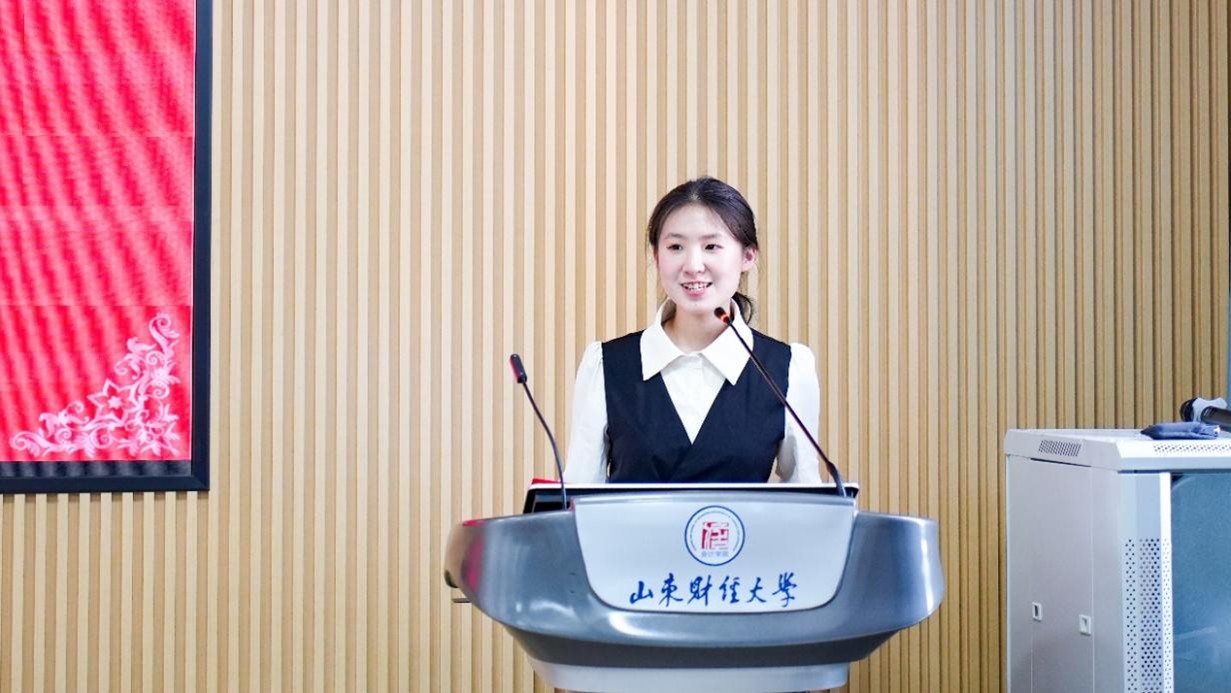 获奖学生代表栾迁在发言中表达了对学校与山东大地公益慈善基金会的感激之情。她分享了自己在学习和生活中的经历,提到奖助学金不仅缓解了家庭的经济压力,更让她感受到社会的关爱与支持。这份温暖激励着她在今后的学习中更加努力,以优异的成绩回报社会,将爱心传递下去。