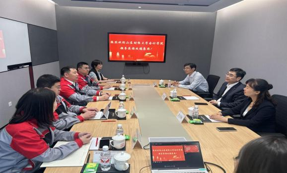 4月25日,我院院长葛永波、党委副书记张贞梅、副院长吴大新赴玫德集团参观调研,共商校企合作路径。玫德集团董事局助理主席薄祥军、财经管理部财经共享中心总监郭孟龙、财经管理部海外销售财经BP部总监李鹏,财经管理部税务管理部总监侯瑞花等参与此次交流活动。