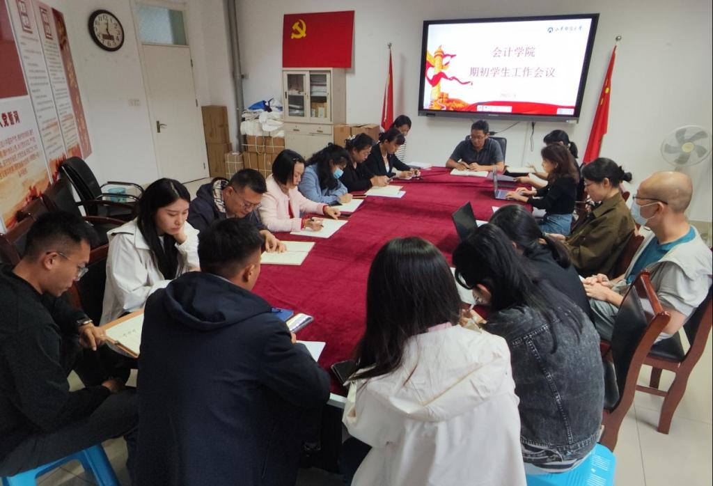 9月22日,太阳成集团tyc151cc召开期初学生工作会议,学院党委书记任海伦,副书记吕晓燕、张贞梅和全体辅导员参加。