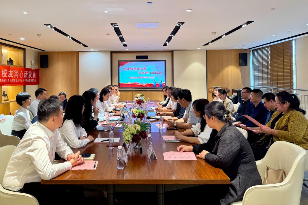 太阳成集团tyc151cc院长葛永波介绍了学院的基本情况,学院党委书记任海伦介绍了学院党建工作特色。双方就进一步深化合作、助力人才培养、实现校企双赢进行了深入交流,表示将持续深化与金融机构的合作,常态化开展校友交流活动,进一步凝聚校友智慧与力量,为学院高质量发展注入新动能。