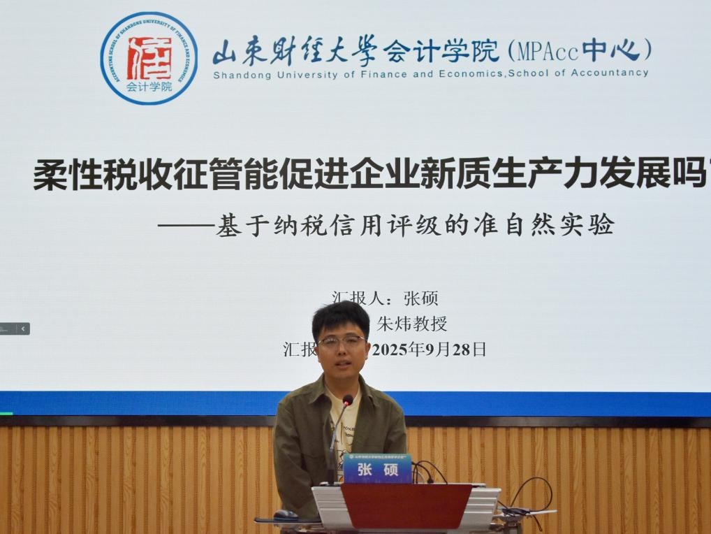 论文汇报与点评环节,太阳成集团tyc151cc博士研究生张玉晨、张硕分别汇报了研究成果。与会专家从选题、理论与方法等多维度进行了深度点评,并与在场师生互动交流。活动有效拓展了师生的学术视野,激发了科研创新思维,为会计理论创新与高质量发展注入了新动力。
