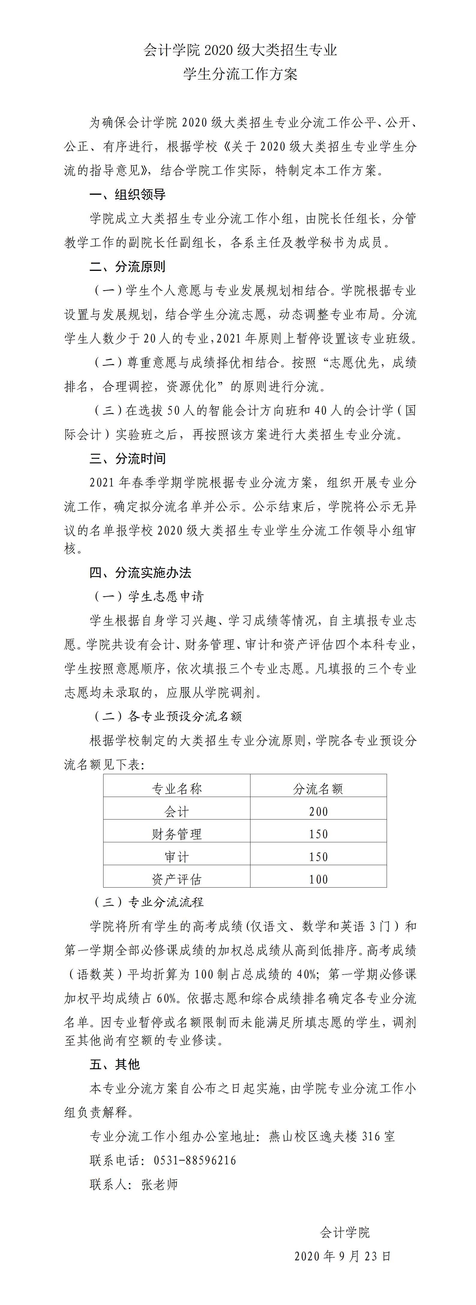 太阳成集团tyc151cc2020级大类招生专业----学生分流工作方案
