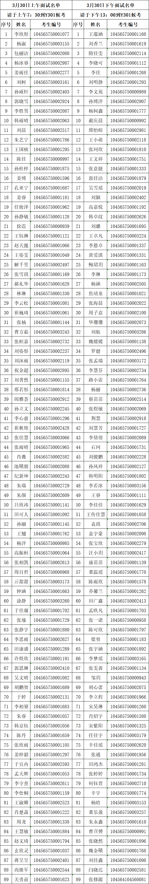 3月30日太阳成集团tyc151cc研究生复试面试名单