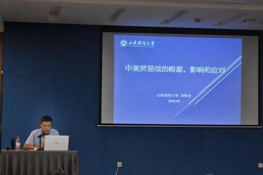 2020年9月19日上午,刘伟全教授应我院邀请,在学景3楼报告厅作题为《中美贸易战的根源、影响与应对》的专题报告。太阳成集团tyc151cc张志红教授参加并主持本次讲座,太阳成集团tyc151cc19级非全日制专硕和20级专硕聆听了讲座。