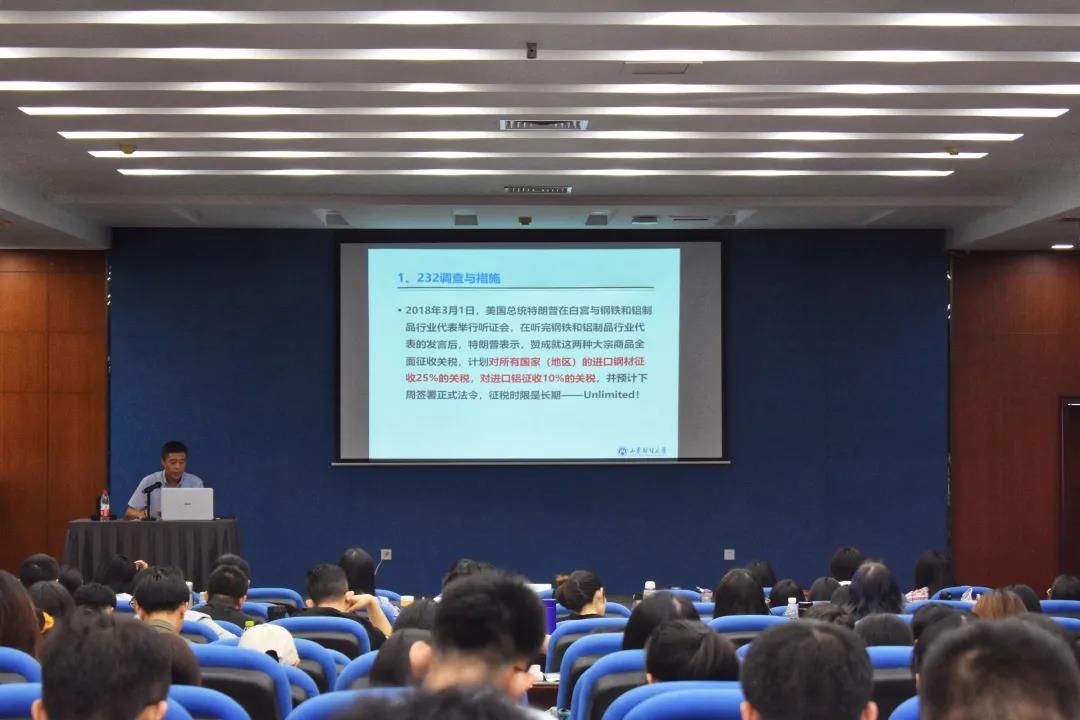 本次活动,刘伟全教授基于全球视角,从政治、经济、文化意识形态等方面对贸易战进行了深层次分析,使学生对贸易战的认识更加深刻,并提出我们要坚持斗争精神,实现中华民族伟大复兴的中国梦。
