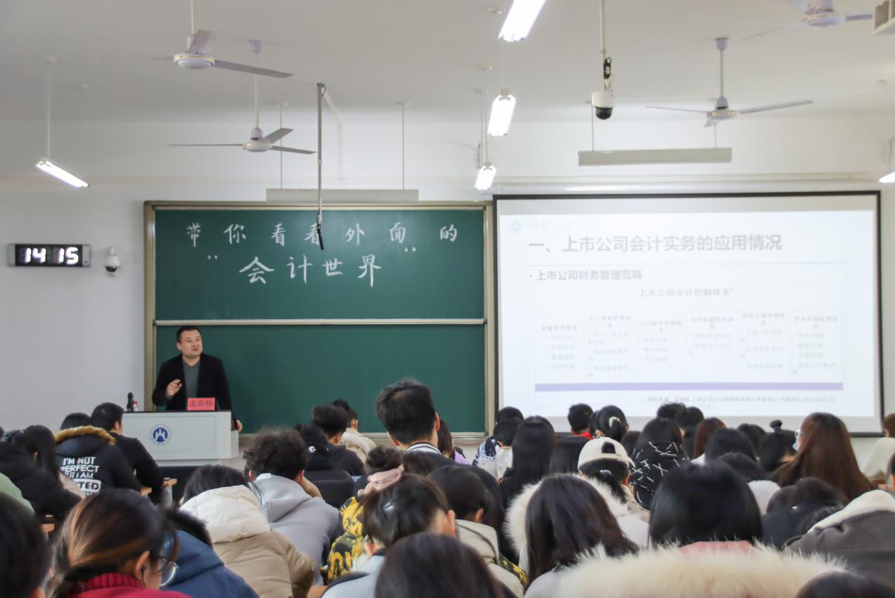 正确的意识方向和思想结构是会计工作的开山之石。孟高栋老师以“上市公司—会计人员—智能财务时代—所需素养”为链条引出话题,详细地讲述了上市公司会计实务的内容和要求,并指出,做账是会计的核心工作、诚信是会计的立身之本。他结合实践,深入浅出地阐述了会计人员的五大工作素质要求、会计控制体系的六个方面,财务管理的重要范围。他通过分析信息快速发展的时代变革,向同学们讲述了管理会计知识的重要性与未来趋势,并勉励同学们要学会并掌握管理会计转型升级的过程和方法,融入时代发展潮流,避免被智能化所替代。