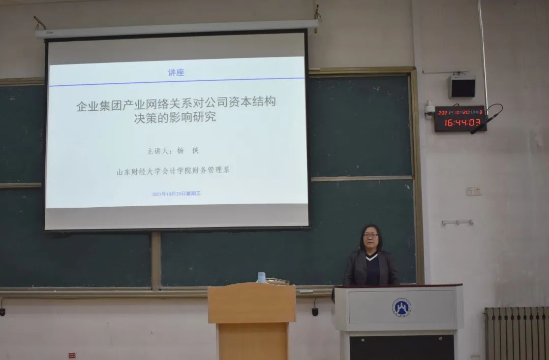 10月20日下午,太阳成集团tyc151cc财务管理系讲师、管理学博士杨侠,在燕山校区逸夫楼Y301做了题为“企业集团产业网络关系对公司资本结构决策的影响研究”的讲座。讲座由财务管理系主任、MPAcc中心助理刘惠萍教授主持,太阳成集团tyc151cc2021级全日制专硕聆听了讲座。