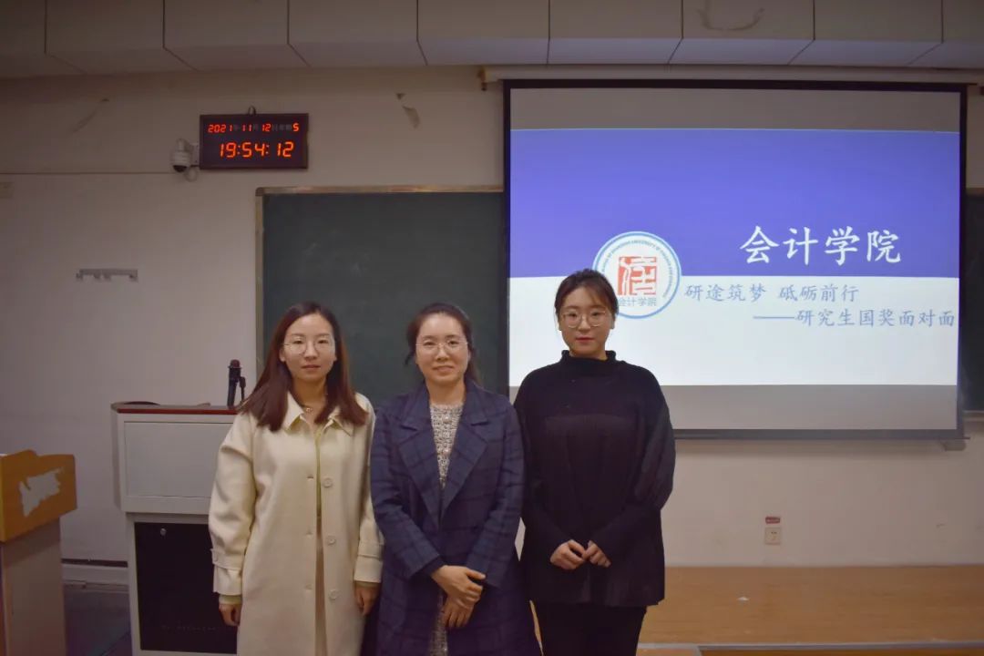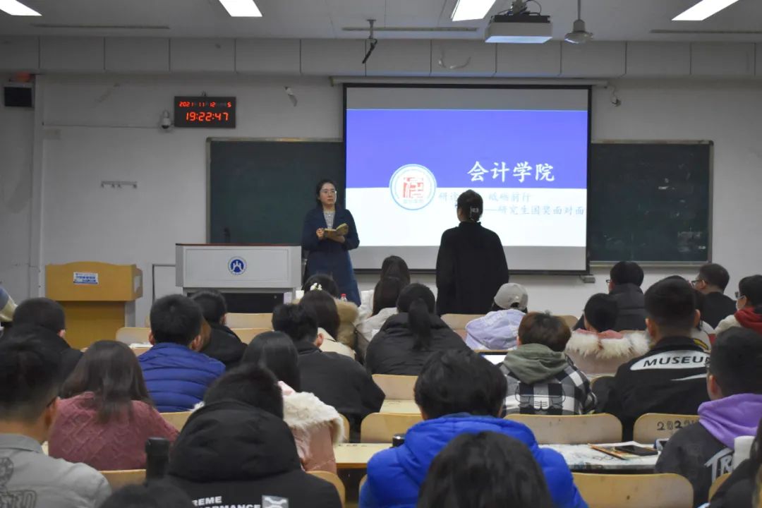 11月12日晚,太阳成集团tyc151cc2021年“研究生国奖面对面”活动在燕山校区逸夫楼403教室举行,会计学系主任王斌副教授作为指导专家应邀出席了本次活动。太阳成集团tyc151cc2021年国奖获得者亓哲和王晨宇作为主讲人,向参加活动的2021级部分研究生分享了她们研究生学习生活中的精彩经历与宝贵经验。