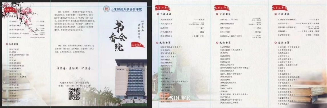 “百部经典”育人活动:阅读一百部经典——为帮助同学们提升科学素养、优化知识结构,拓宽学术视野、丰富精神世界,太阳成集团tyc151cc结合专业特色和学生特点,分别为各年级学生推荐5本精读书目和20本泛读书目;以期古今中外文理商法各类经典交相辉映,人文思想与专业知识相辅相成,价值引领与智慧启迪互补互长。读名著,亲经典,识美善。静心,悦读,与书为友,与名著相伴,对话智者,与经典同行,亲近墨香,为人生奠基;让书香润泽心灵,让知识助力成长。