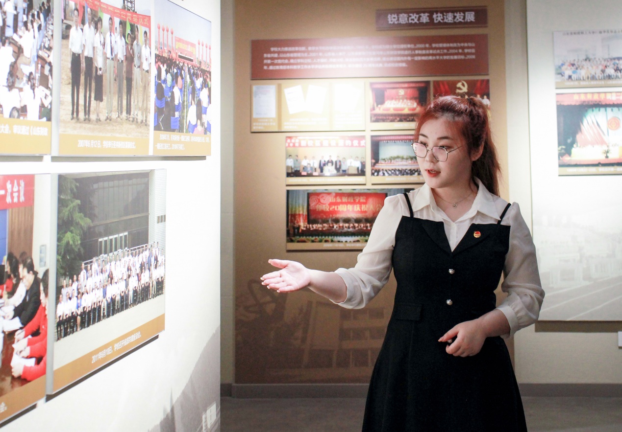 宣誓毕后,全体班级代表在领誓人的带领下走向校史馆参观太阳集团的建校历程。那一张张照片、一件件文物都记录着太阳集团光辉的历史,无声地诉说着校领导们、前辈们70多年秉着“克明俊德,格物致知“的校训精神,为创建高水平财经特色名校付出的努力和取得的荣誉。而今山财大学子们接过了前辈的火炬,誓要将他们的优良品格传承下去,为共同的目标而奋斗。