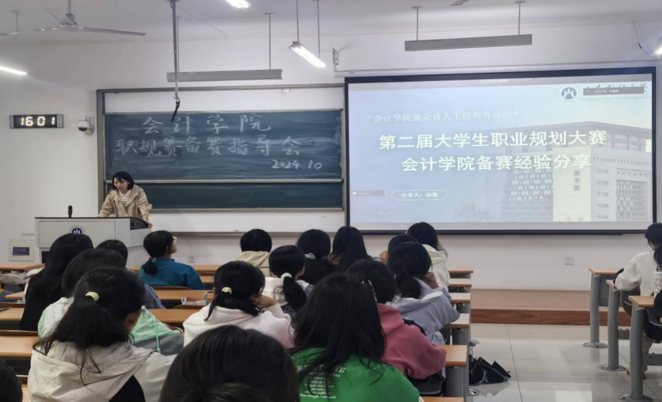 为积极响应学校第二届大学生职业规划大赛的有关工作部署,增强大学生职业规划意识,帮助我院学子更好地了解本次比赛,学院于2024年10月17日在圣井校区举办了就业育人主题教育活动——第二届大学生职业生涯规划大赛院赛动员暨备赛指导会,学院就业办主任孙菁主讲,部分本科及研究生线上线下参加。
