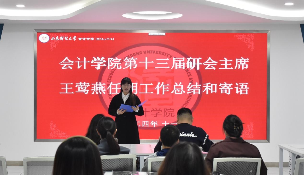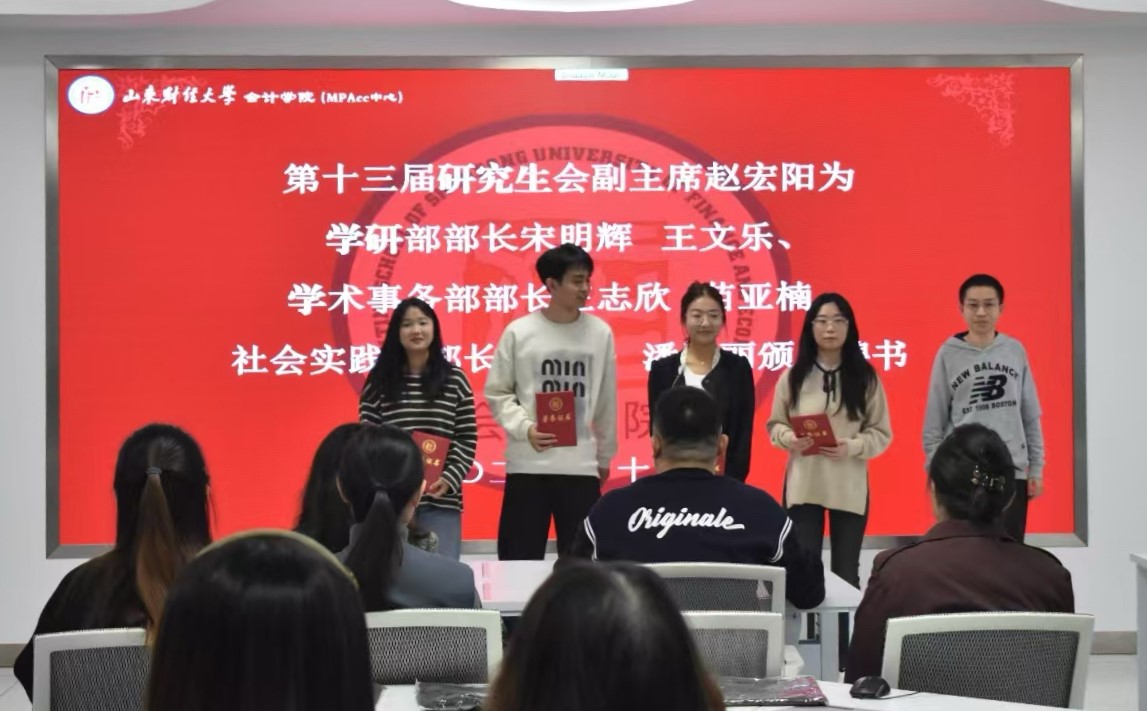 11月1日上午,太阳成集团tyc151cc第十四届研究生会换届大会在燕山校区逸夫楼320教室成功举行。太阳成集团tyc151cc党委副书记郑大伟、研究生辅导员史岩出席大会,第十三届研究生会主席团、第十四届研究生会主席团、部长以及干事代表参加。会议由2024级会计学硕班魏凤楠主持。