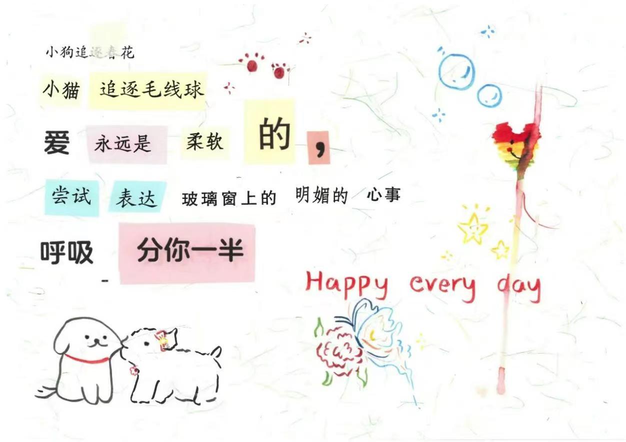 纸页翻动间,灵感如蝶翩跹;字句重组时,诗意破茧成花。太阳成集团tyc151cc举办“意剪生活画,诗写青春风”拼贴诗主题活动,以“拼贴诗”为媒,展开了一场别开生面的文字艺术之旅。在这场充满创意的活动中,同学们满怀对文学创作的热忱,用剪刀裁剪出独特视角,以拼贴重组出奇妙意境,将碎片化的文字化作充满生命力的诗篇。每一首作品,都是对传统诗歌形式的大胆突破,对生活感悟的细腻表达,更是对艺术创新的不懈追求。经过精心评选,一批优秀作品脱颖而出,现在,就让我们一同走进24级同学们的诗意世界,领略拼贴诗的独特魅力与创作风采。