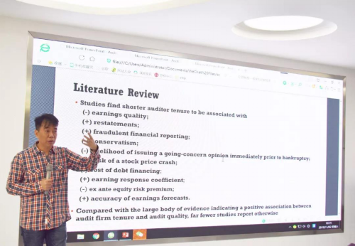 最后,戚教授又向我们介绍了研究过程中发现的审计师的资深程度与盈余可比性正相关这一现象,并且用中国数据得出的结论更显著。最后,戚教授说明了审计师任期越长,发现问题及时回报的时间就拖得越久,进而导致审计质量不好这一结论,并且用中国数据研究得出结论也是一致的。