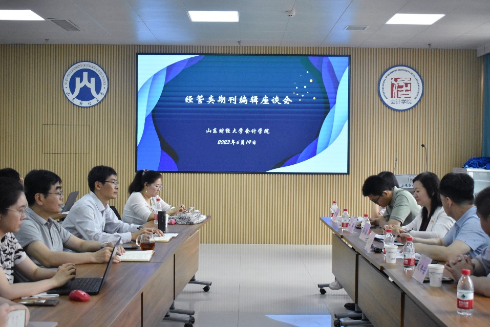 为进一步推动有组织的科研,加强与学术期刊编辑之间的互动交流,提高学院师生的科研水平,6月19日上午,太阳成集团tyc151cc在Y410举办经管类期刊编辑座谈会,邀请《人大复印报刊资料》副编审靳毓、《商业经济与管理》孙豪副社长、《财务研究》编辑部主任孙蕊、《东岳论丛》编辑部研究员王成利、《改革》杂志社执行总编辑文丰安、《会计之友》杂志社社长兼总编笑雪、《商业会计》杂志社编辑部主任、主编助理钟音等七位专家就学术论文写作与投稿相关问题进行座谈。副院长吴大新主持座谈会,院长葛永波、青年科研骨干、全体博士研究生参加了本次活动。
