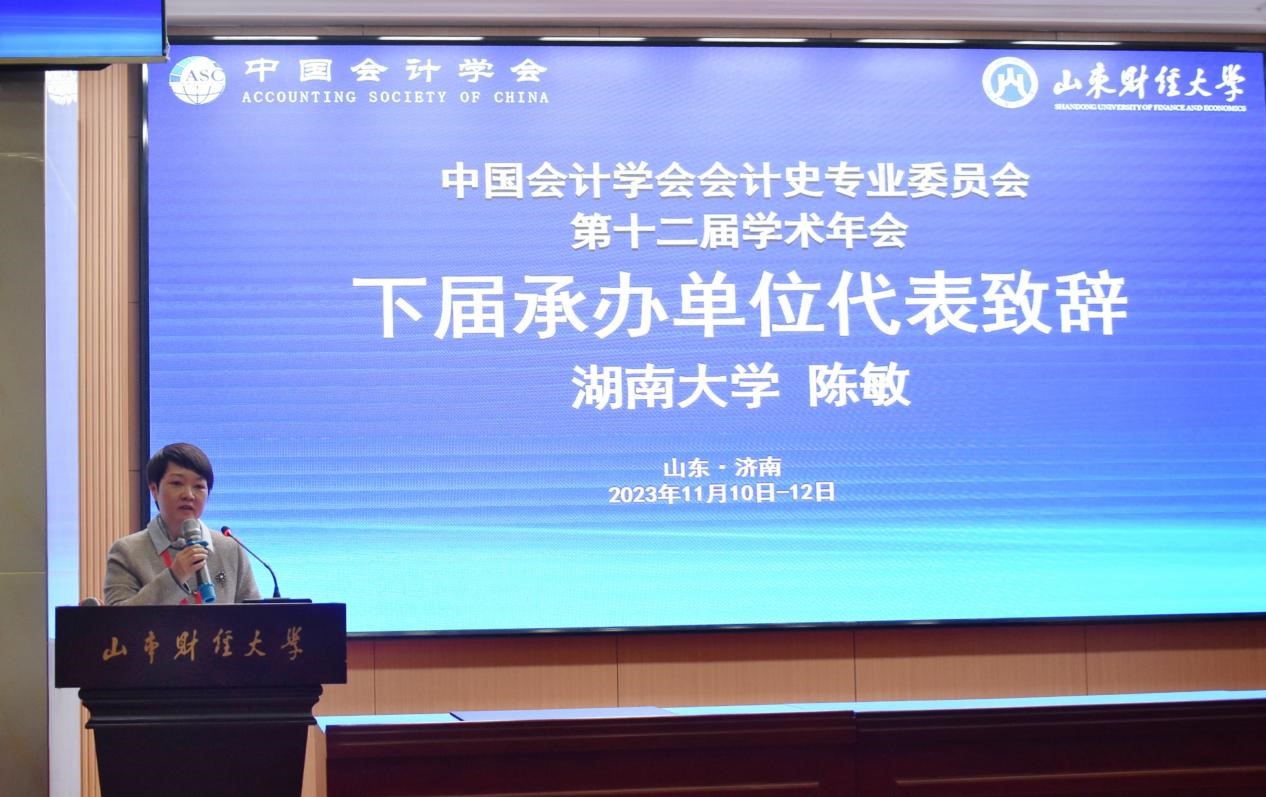 致知力行,踵事增华。11月11日,中国会计学会会计史专业委员会第十二届学术年会在太阳集团成功举办。来自财政部、清华大学、中国财政科学研究院、中国人民大学、中南财经政法大学、湖南大学、西交利物浦大学、《会计研究》编辑部、《财务与会计》编辑部等单位的知名专家学者和博士、硕士研究生近百人参加。开幕式上,太阳集团副校长王敬政、中国会计学会副秘书长刘国强先后致辞,太阳成集团tyc151cc院长葛永波教授主持开幕式。