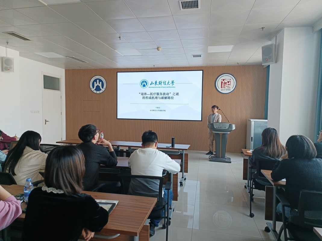 4月11日,保险学院副院长于新亮教授应邀做客我院双周学术沙龙,为我院师生作题为“‘退休——医疗服务波动’之谜的形成机理与破解路径”的学术讲座。讲座由副院长吴大新主持,学院青年教师和全体博士研究生参加了活动。