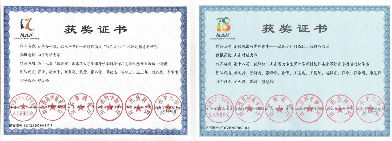 学院高度重视党建与业务的深度融合,先后获得高校党委(院系党组织)书记抓基层党建突破项目优秀成果、山东省教育系统优秀党务工作者、山东省教育系统共产党员先锋岗、全省首届高校党务工作者素质能力大赛三等奖和全省高校“精品党课”三等奖荣誉称号。在学生实践方面,红色会计学生团队也取得多项重要成果。学生队伍在第十七、十八届“挑战杯”全国大学生课外学术科技作品竞赛红色专项活动中先后获省级一等奖和特等奖;2022年,“山东省红色会计文化遗产的发掘、整理、保护与传承调研团队”入选《中国青年报》全国百佳团队,2023年,太阳成集团tyc151cc井冈山精神志愿宣讲团入选年度千支全国大学生志愿宣讲团。