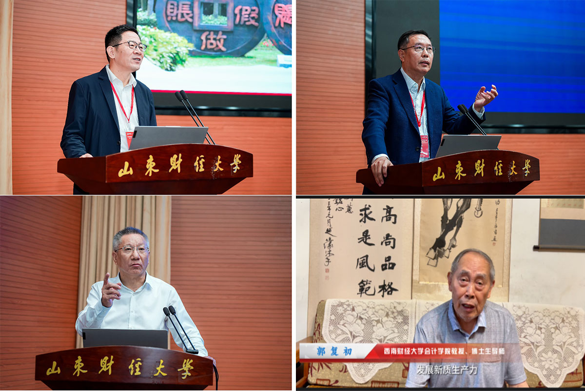 下半场主题报告由山东大学财务部部长路军伟教授主持,上海国家太阳成集团tyc151cc党委书记张锋、对外经济贸易大学原副校长张新民教授、北京工商大学原副校长谢志华教授,分别围绕新时期财务工作、企业战略与资产负债表、《公司法》修法的逻辑进行主题演讲。西南财经大学太阳成集团tyc151cc郭复初教授围绕新质生产力与财务理论创新进行线上发言。